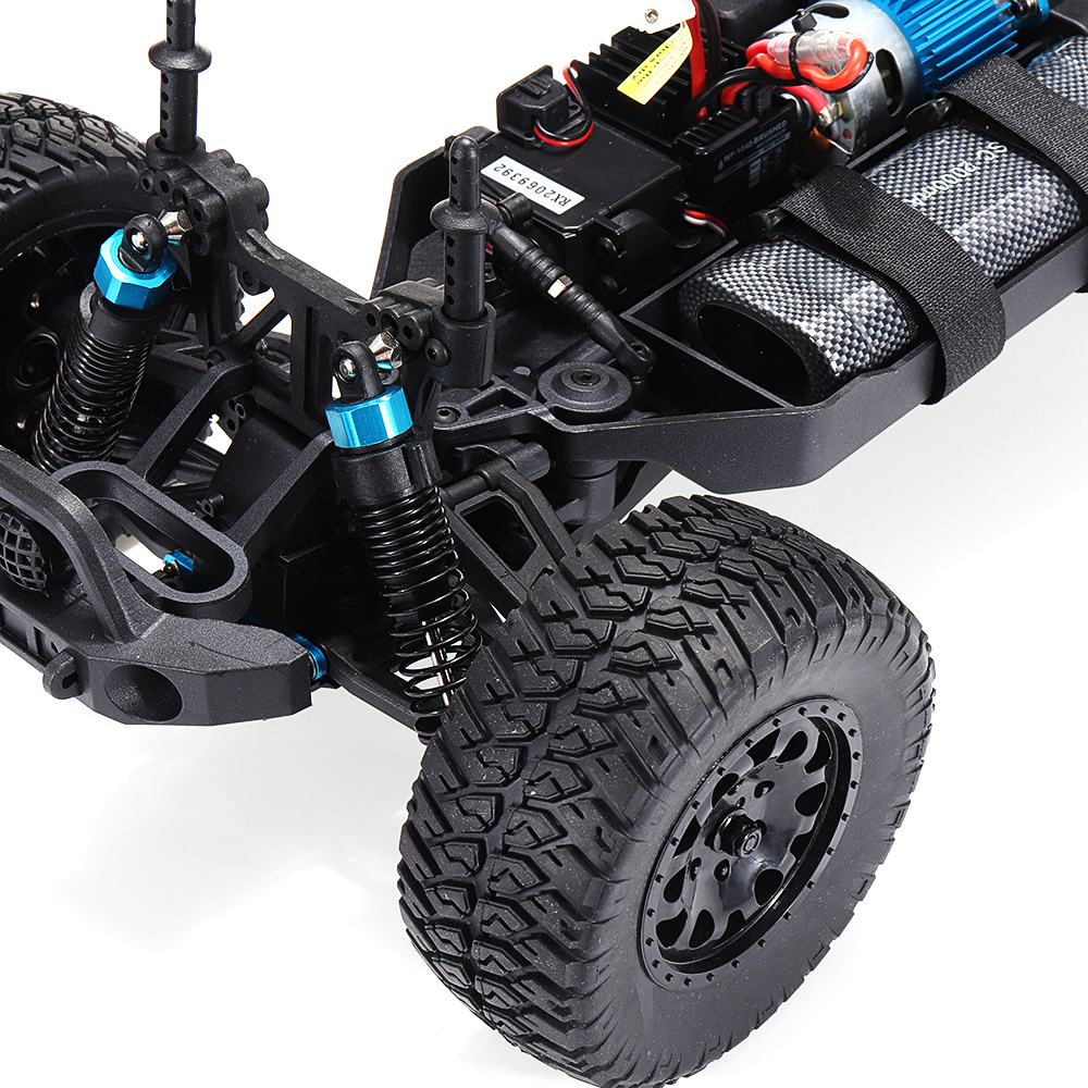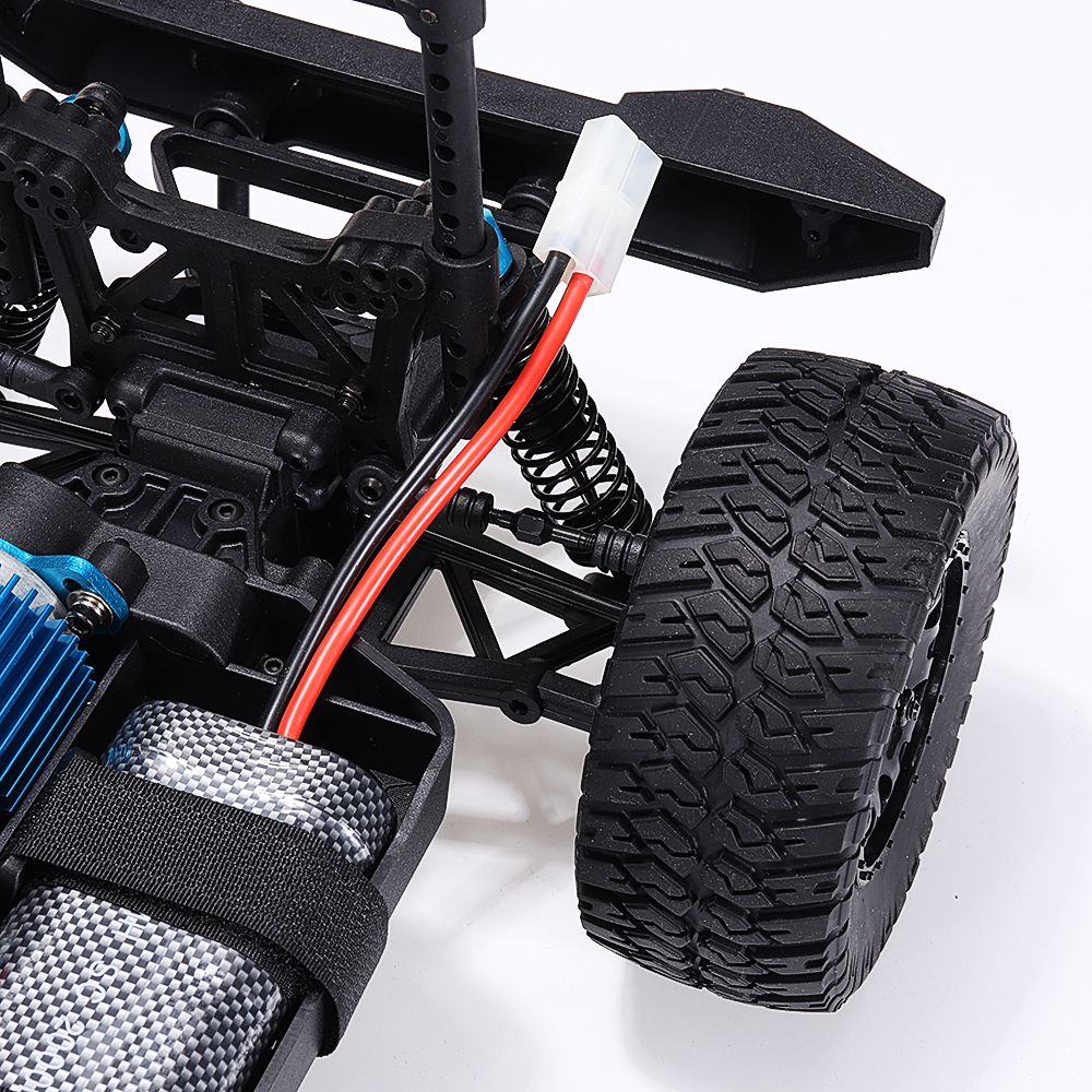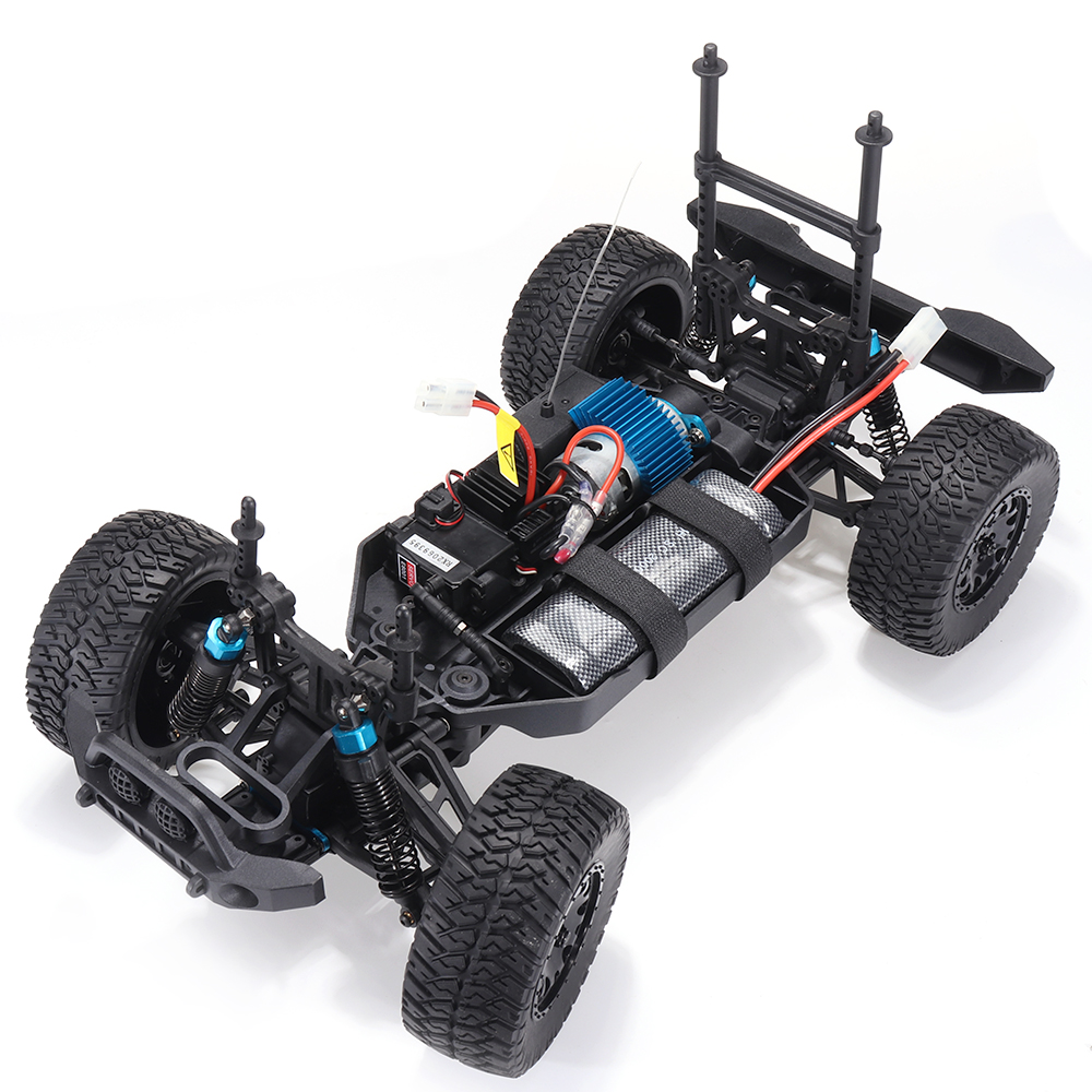 Feature: 1. Steel CVD transmission structure can support high-speed operation and avoid disconnection. 2. The spare tire on the back of the car can be used, which is the original spare tire. 3. Adopt e6001 6kg standard steering gear. 4. Metal big gear. 5. It is equipped with front and rear lamp holders, which can be DIY modified, and the lamp does not include. 6. Independent ESC and receiver, convenient for replacement. 7. Oil pressure shock absorbers, refueled. 8. High quality nylon anti-collision.
