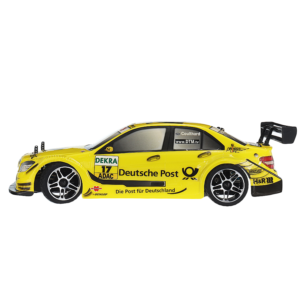 Features: Full proportional control drift rc car,ready to run Powerful motor and esc,they are equipped with a heat sink, and the heat dissipation performance is better. Aluminum alloy wheel rims and rubber tires,great grip performance Oil filled adjustable shock absorbers and front drive shaft All ball bearings,10.9 hardness screws Fully packaged otion transfer system protects the gear box from stones and dust The front and rear of the car use steel differential gears Front and rear anti-rolling design for stable cornering drift The car shell is made of PC material, which has high strength, fatigue resistance, dimensional stability and no deformation.
