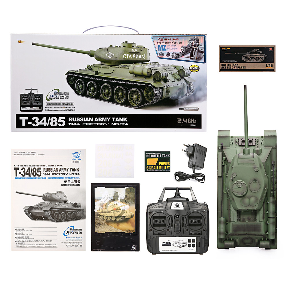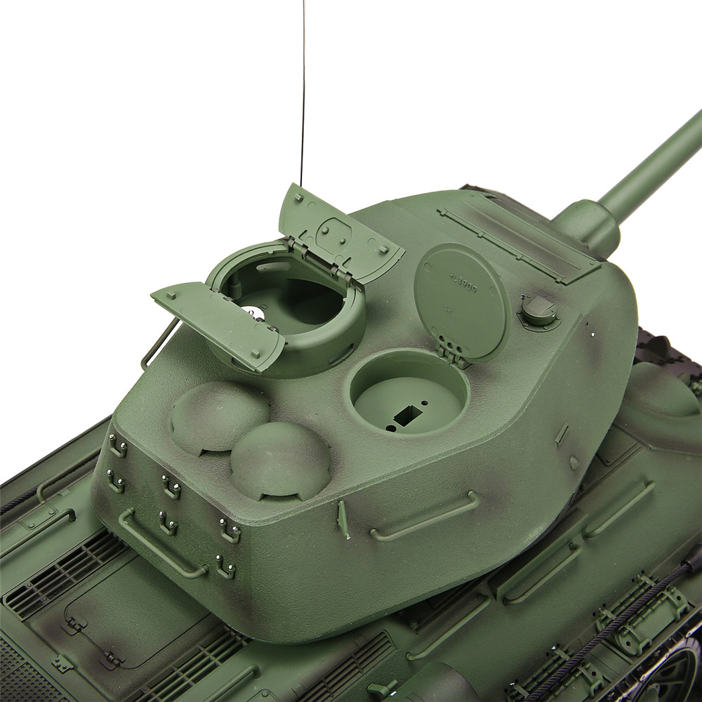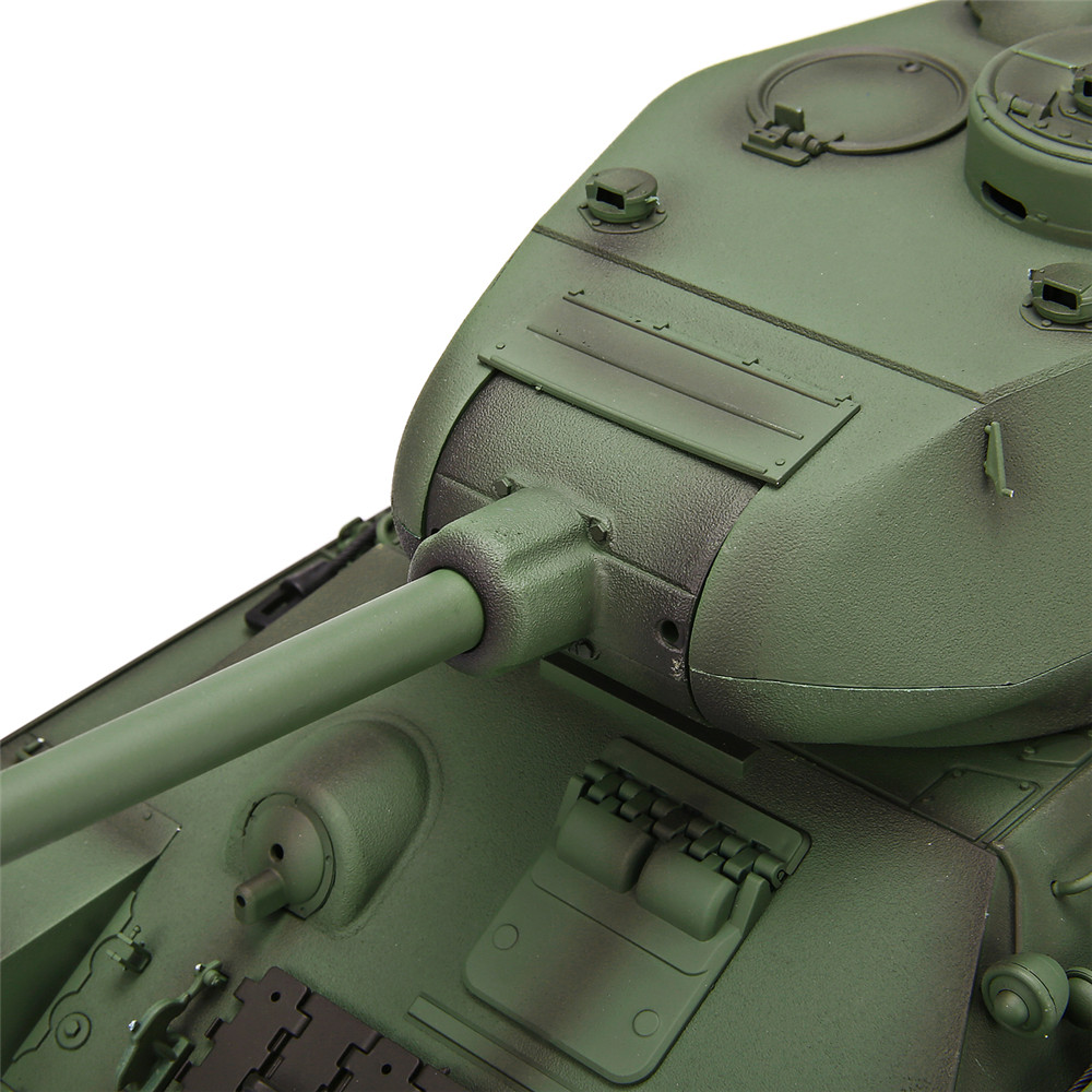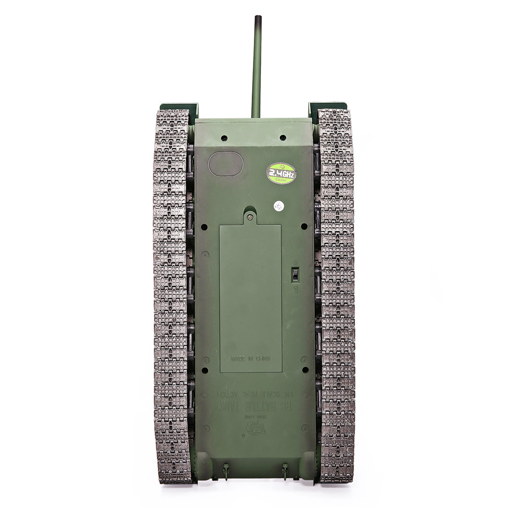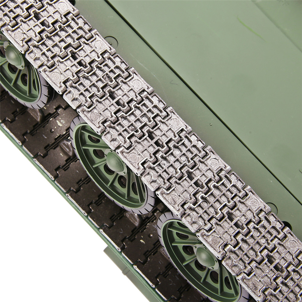 Function: Stepless speed forward and backward, super letter rotation, rear seat force demonstration, turret 320 degree rotation, barrel lift 30 degrees, simulation sound and action effects, full scale remote control function, tank smoke effect, independent suspension, realistic commander