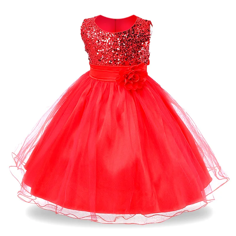 3-14yrs Hot Selling Baby Girls Flower sequins Dress High quality Party Princess Dress