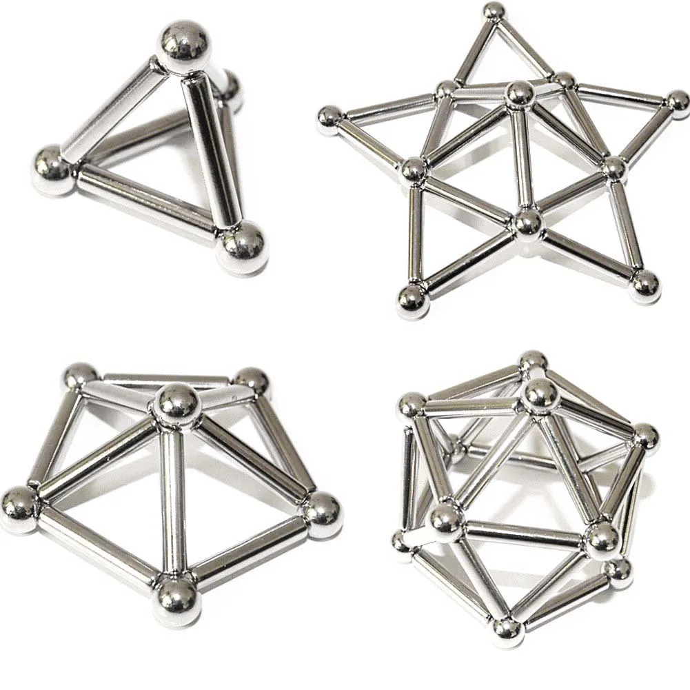 2. It includes 36pcs magnetic sticks and 27pcs magnetic beads which can be built into different shapes. Also, more parts can be added to build a more complex shape.