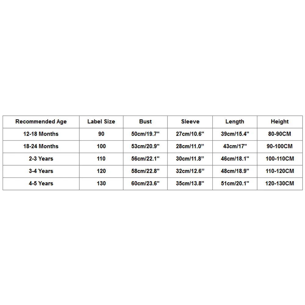 | Recommended Age | Label Size | Bust | Sleeve | Length | Height |