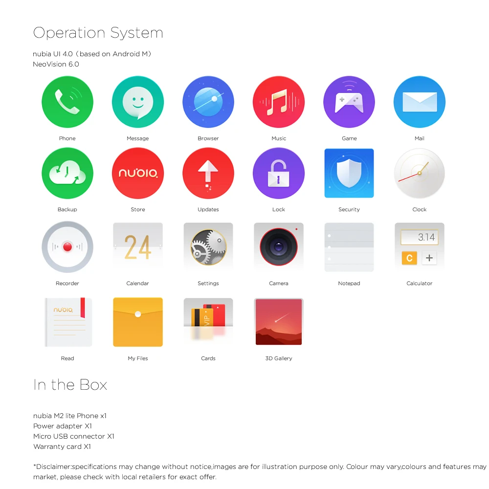 | OS | nubia UI 4.0 (based on Android M) NeoVision 6.5 |