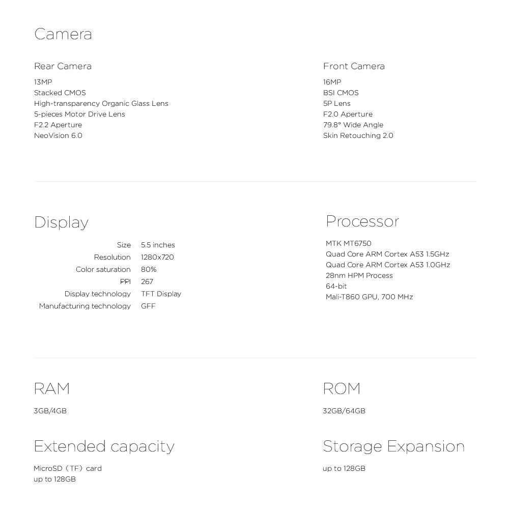 | ROM | 64GB, Support TF card up to 128GB extended(The system will take up some ROM) |
