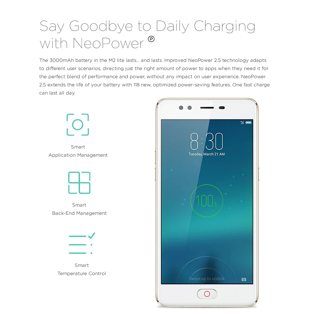 3000mAh battery with improved NeoPower 2.5 technology adapts to different user scenarios. optimized power-saving features, one fast charge can last all day.