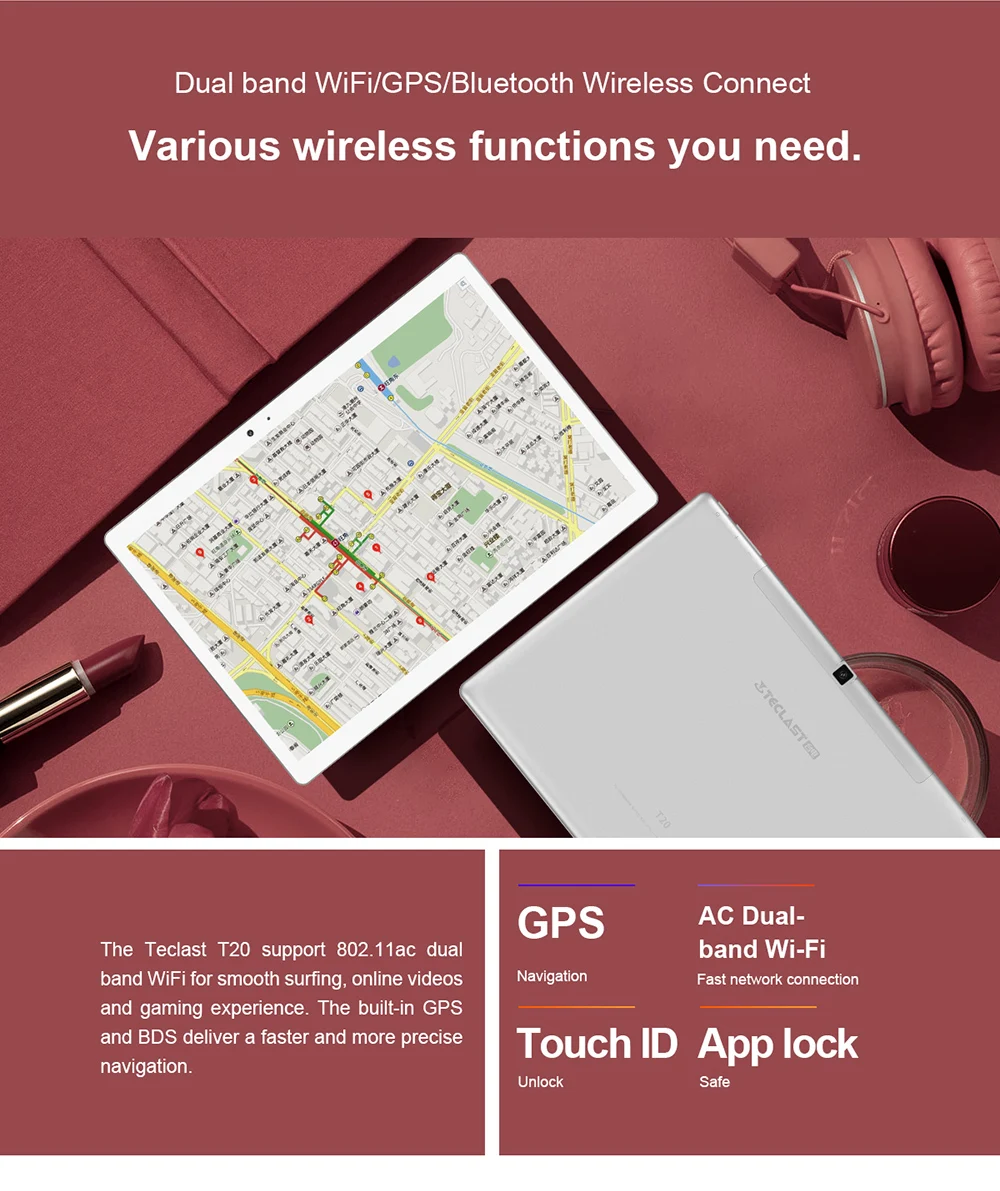 Teclast T20 is a perfect 4G phablet for your daily use. Equipped with a 10.1 inch 10-point touch display, brings your photos and videos to life. Android 7.0 OS ensures you more wonderful user experience. Powered by MT6797X ( X27 ) deca core processor, offers you smooth operation and stable multitasking experience. 13.0MP rear-facing + front dual camera for capturing memorable moments and high quality pictures in daily life. Dual band 2.4GHz / 5.0GHz WiFi supported, ensures you high-speed surfing.
