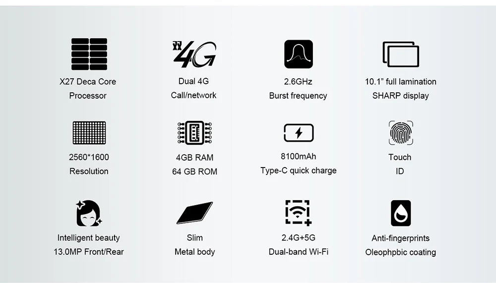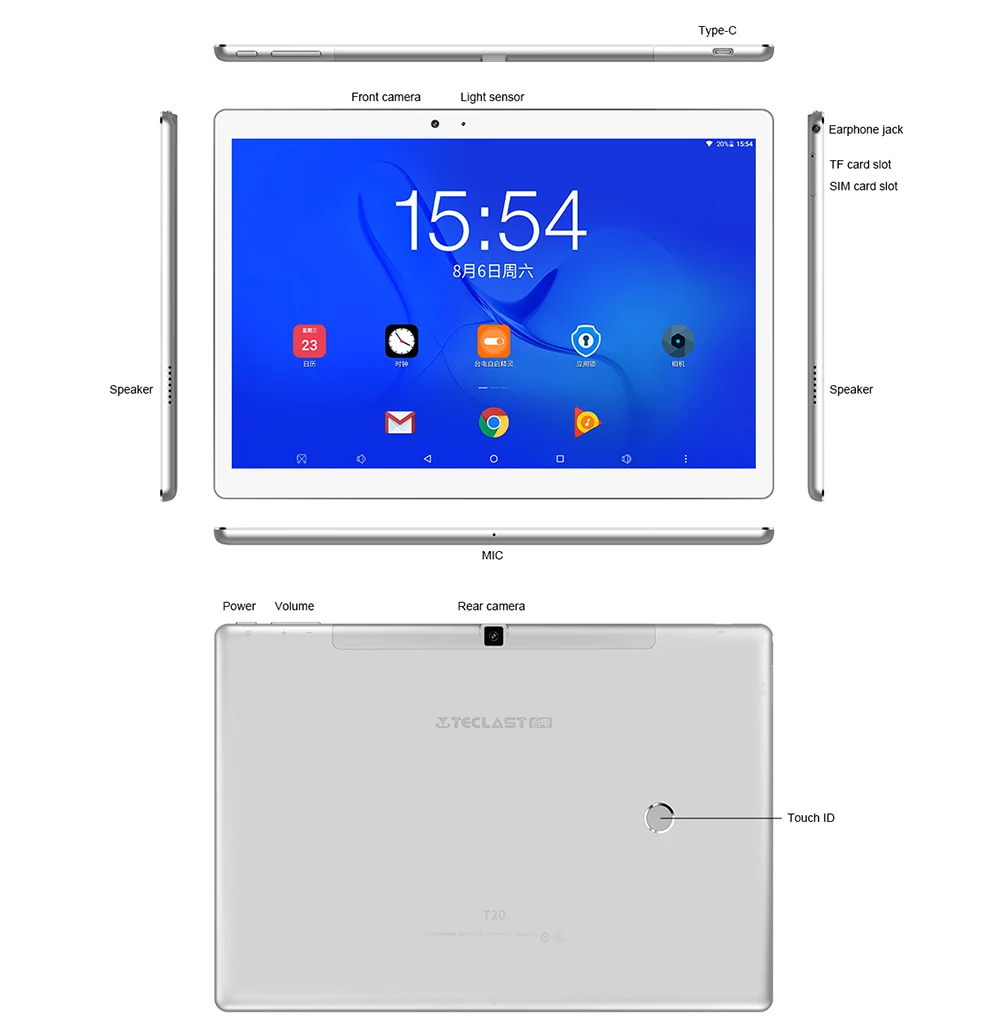 Teclast T20 4G Phone Fingerprint Recognition MT6797 X27 Deca Core