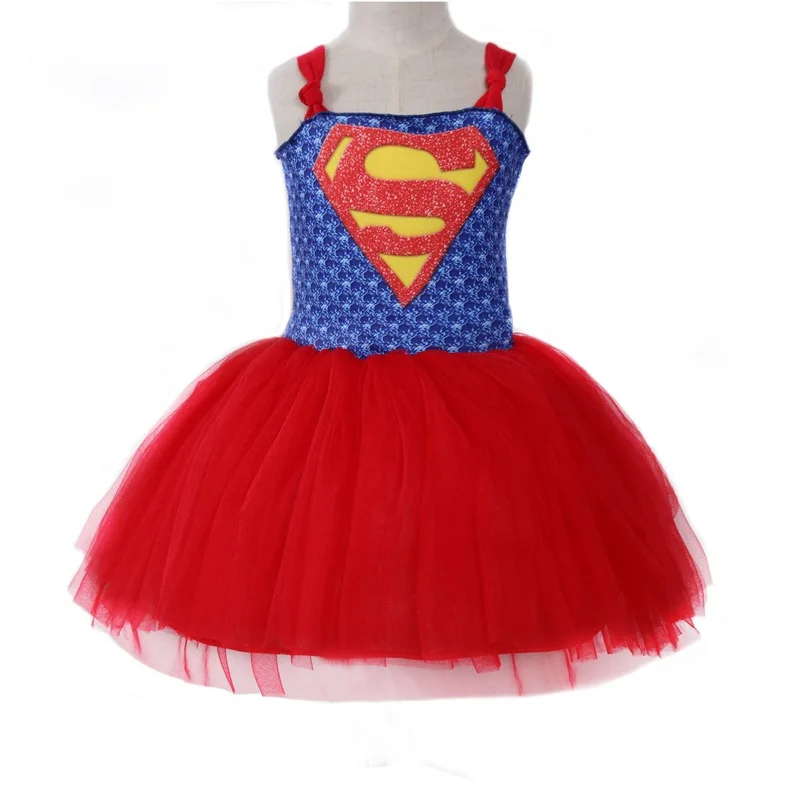 Summer Superman Batman Girls Tutu Dress with Mask Super Hero Inspired Baby Costume Kids Cosplay Christmas Halloween Moana Dress